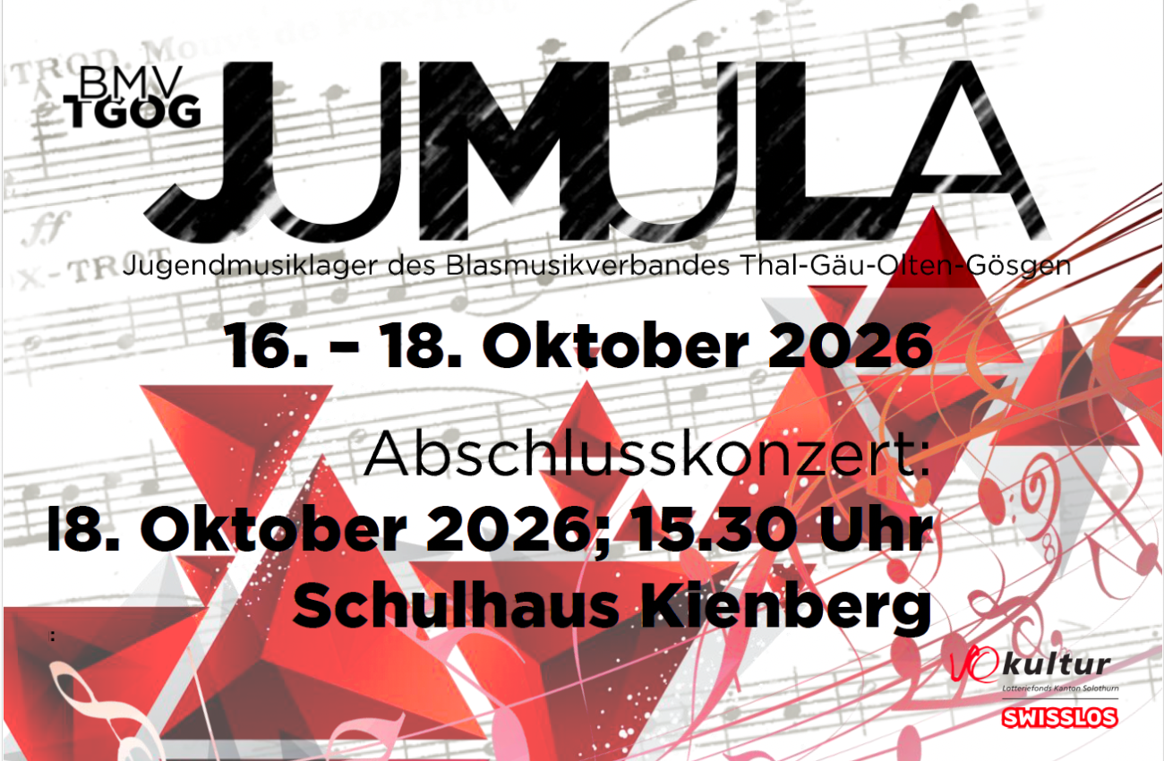 Die Daten für die Musiktage 2027 in Herbetswil und Wolfwil sind bekannt. Die Wochenenden vom 12./13. + 26. Juni 2027 dürft ihr bereits in euren Vereinskalendern markieren.